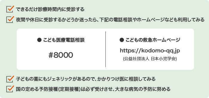 ムダな医療費を減らし、必要なときに安心して医療が受けられるよう、子ども医療の適正受診にご協力をお願いします。